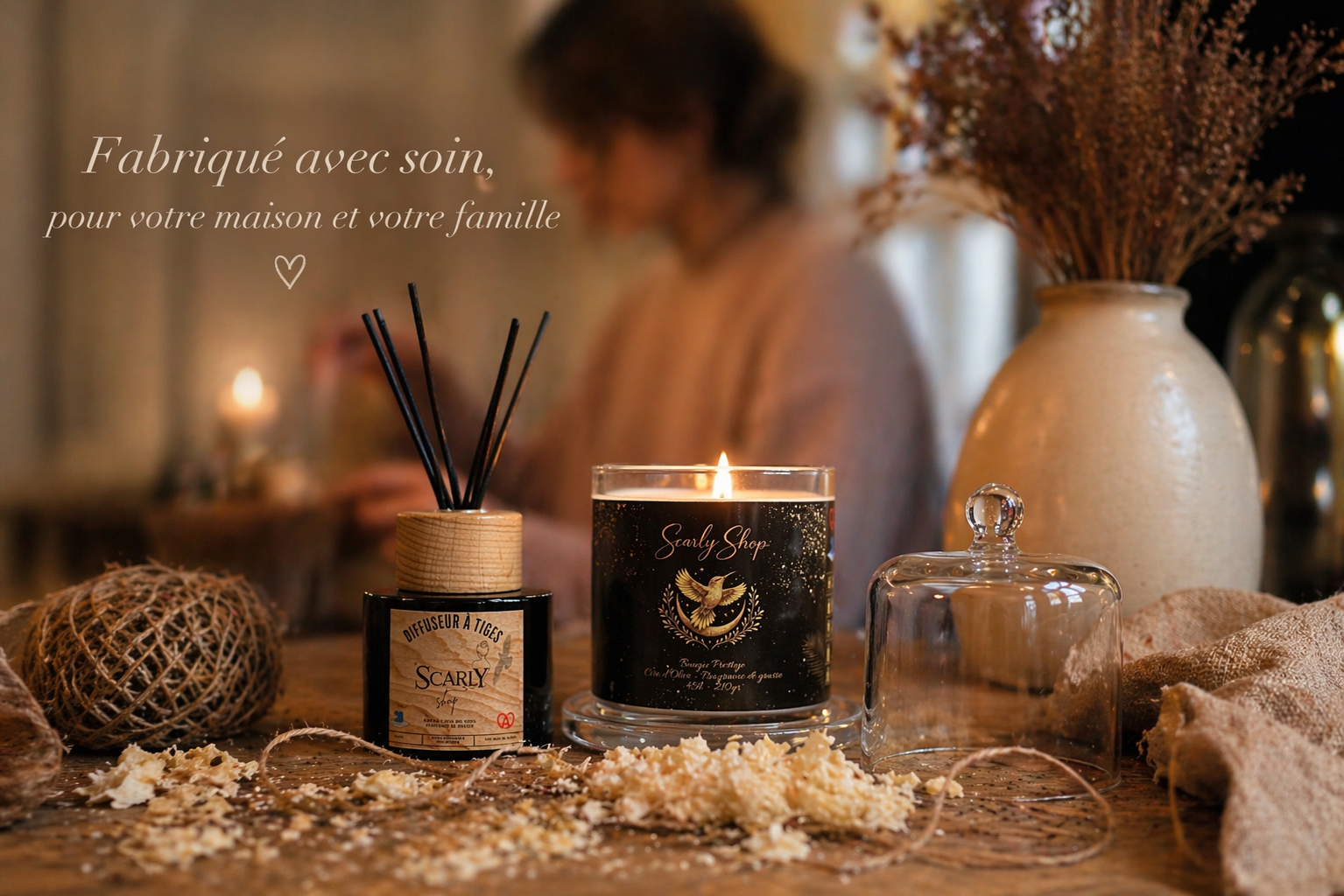 Découvrez l'univers Scarly Shop : bougies artisanales aux fragrances envoûtantes, fondants parfumés et diffuseurs uniques pour sublimer votre intérieur. Fabrication 100% française à Mulhouse.
